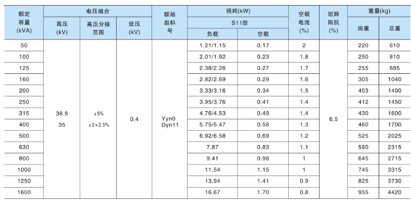 50~1600/35型油浸式變壓器適用于交流50Hz、額定工作電壓35kV及以下的電力系統(tǒng)中,作為中小型變電站及工礦企業(yè)、事業(yè)單位動力配電及照明負(fù)荷的變電設(shè)備。